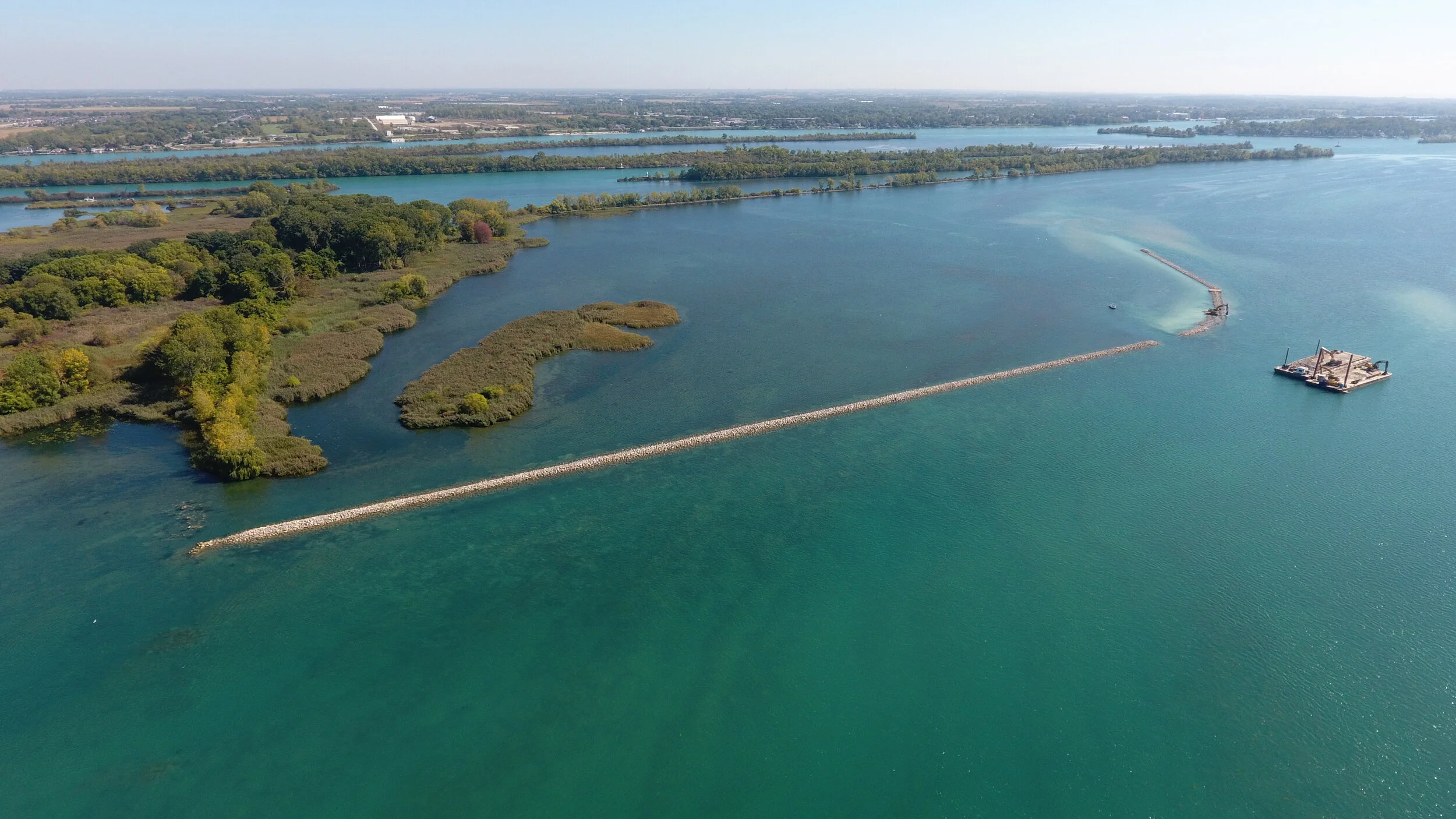 Stony Island is part of the "Conservation Crescent" surrounding the lower end of Grosse Ile and is well recognized for its biodiversity. However, decades of erosion greatly reduced the wetlands surrounding this island. Breakwater structures that once protected the island's north and south bays were nearly eliminated. This project involved reconstructing these breakwaters to protect the island’s valuable coastal wetlands from further degradation.